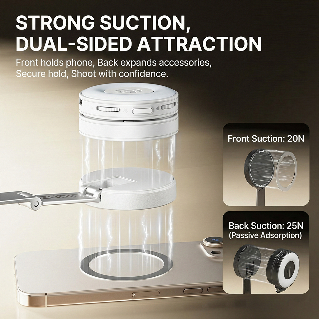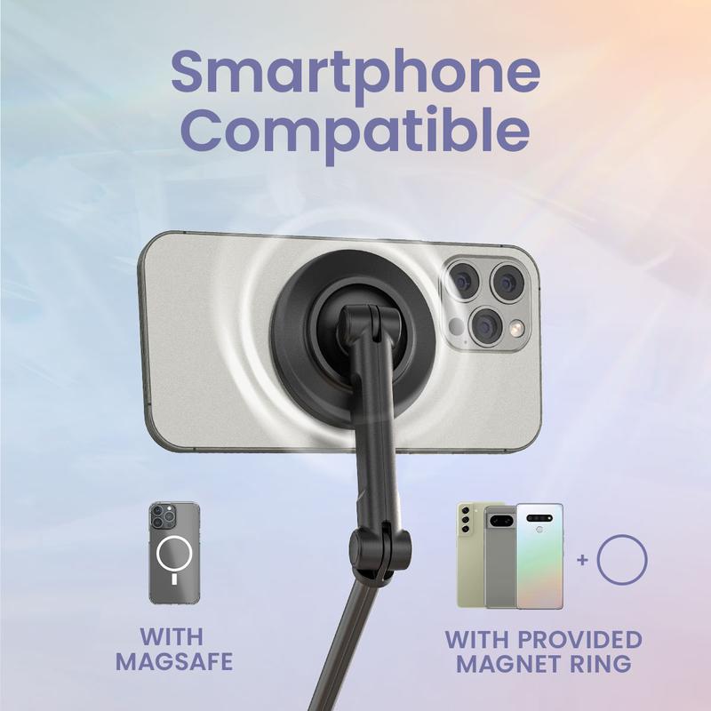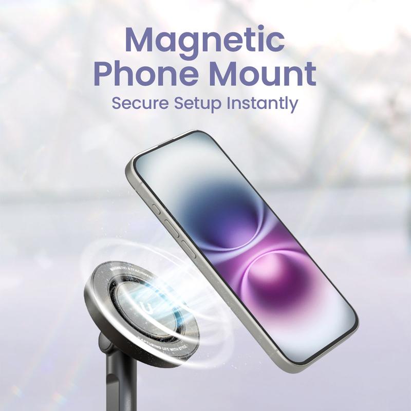 CLIPLOOK MagSafe™ phone tripod snaps into precise alignment and locks your phone in a tap. Built-in N52-grade magnets deliver rock-solid hold — no more drop anxiety while filming on the go. Package includes: 1 metal ring.
